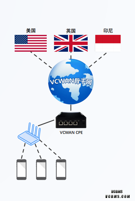 解决方案 企业总部及分支机构都接入VCWAN设备,即开即 用,网络统一管理集中配置,可视化监控,故障快 速排查;成本比传统专线降低70%以上 适用场景 国内企业组网、跨境企业全球组网