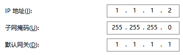 2.盒子WAN口接上能上网的网线,LAN口接上电脑或者服务器,然后在电脑或服务器配置公网IP,IP:______________ ,掩码:______________,网关:_________________。 1)接在电脑 公网IP直接配置电脑上,如下图所示,IP为1.1.1.2,掩码为255.255.255.255,网关为:1.1.1.1