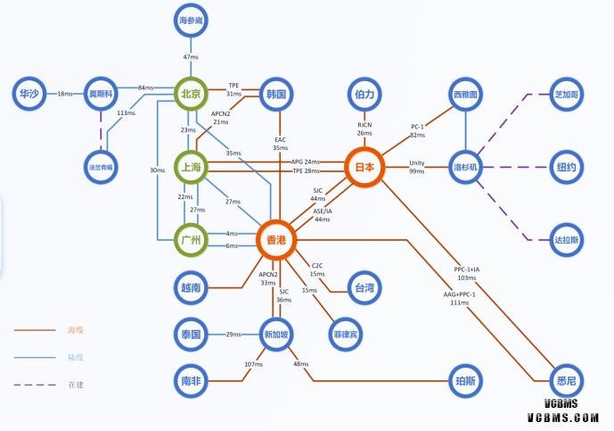 全球网络拓扑 30+ 骨干核心节点、 150+ 云节点 10G+ 海/陆缆物理专线传输 72ms 全球平均时延 99.9% 节点成环备份保证骨干可靠性